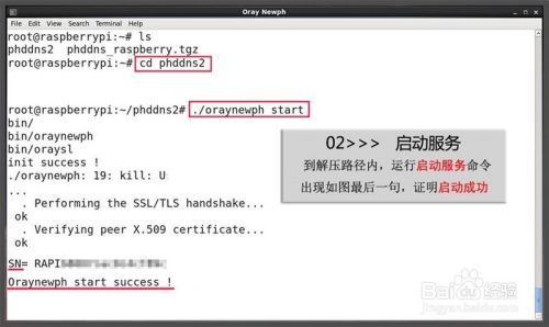 解压完成后,在当前路径下执行cd phddns2,进入phddns2文件夹,执行./oraynewph start