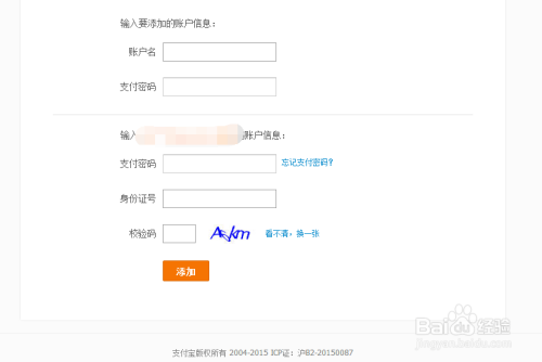 添加账户需要输入未实名认证的账户名及支付密码,并且需要输入主账户的支付密码,这样才能关联。