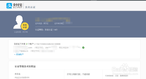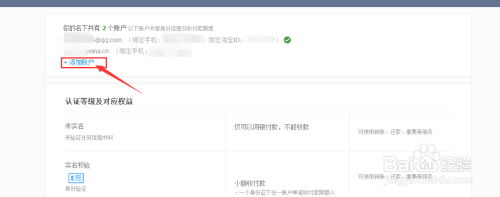 点击下方的【添加账户】你可以将未实名账户添加到你名下,添加后将共享你的身份信息,且无法解除,请谨慎添加。