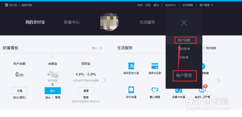 登录完成后点击右上方的【账户管理】→【账户设置】;进入账户设置