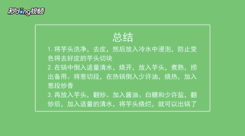 1芋头500g,油10g,白糖5g,酱油5g,盐5g,葱10g。