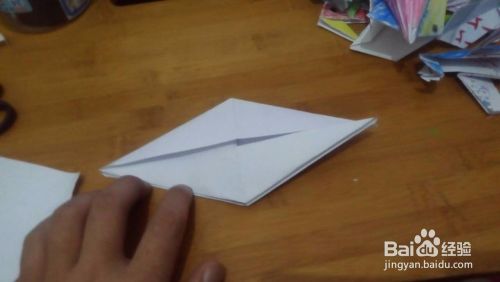 压折痕,压好后,取开,往下拉,根据印痕折好,就成双菱形了