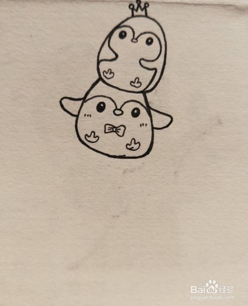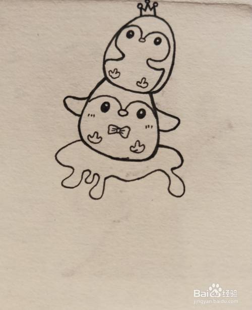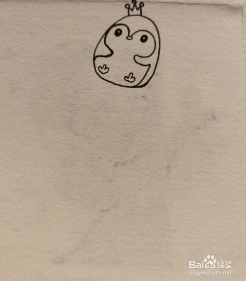 首先在纸的上方画出一个鸡蛋形的企鹅身体。