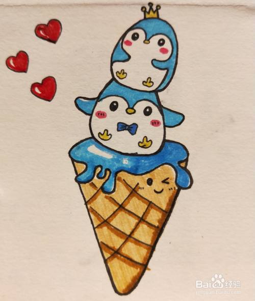 夏天除了空调,西瓜,雪糕,奶茶,肯定也少不了冰激凌了。那今天我们就来画一只企鹅冰激凌吧。