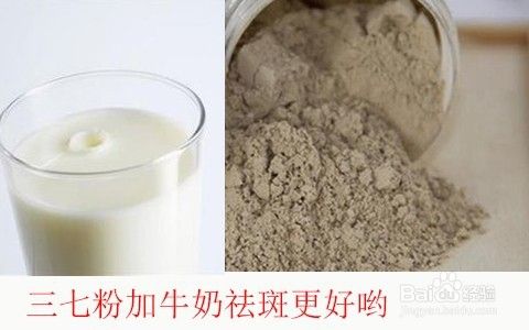 如果三七粉温水冲服不太好喝,或为了加强美容祛斑效果,再冲好的三七粉饮品中,加入适当牛奶,或红糖、或蜂蜜,不但提高了三七粉饮品口感,对祛斑,淡化雀斑效果更好!