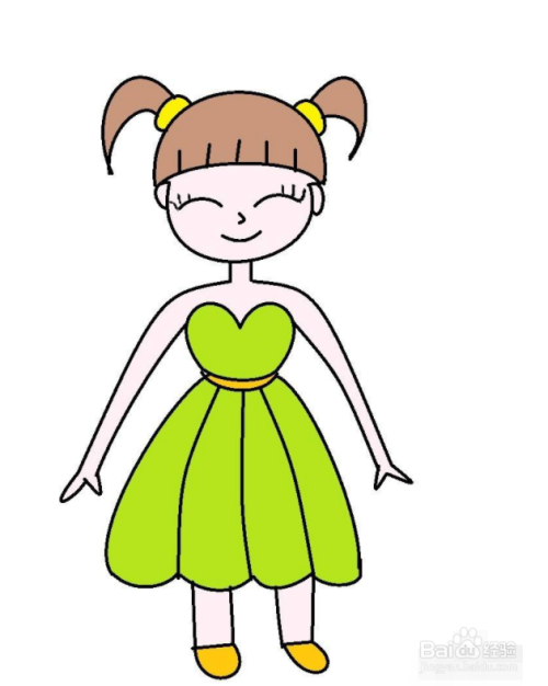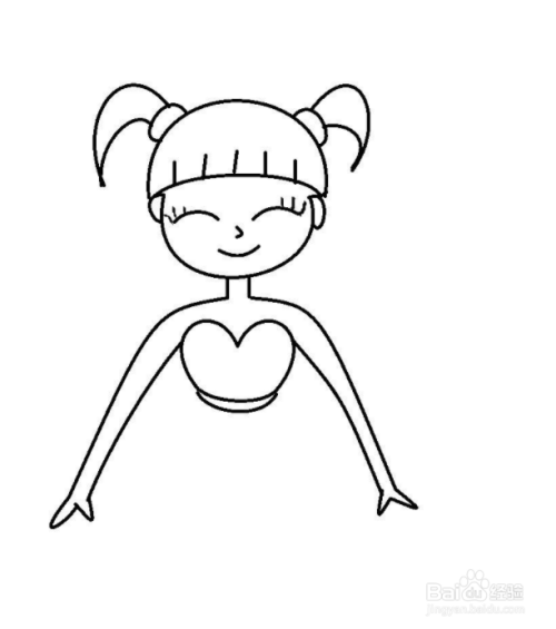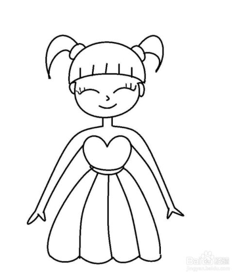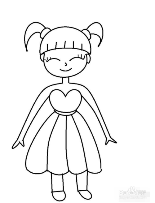 画出裙子轮廓,把裙子纹理画好,如图所示。