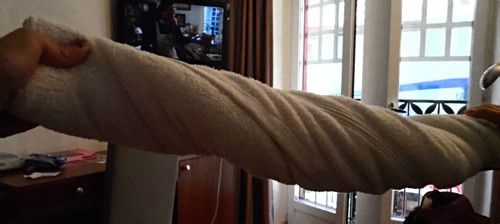 摊开毛巾卷,你会发现,衣服中的水分被毛巾吸走,变得比较干燥了,这种情况下,用晒衣架晾好衣服,挂在空调房里,一个晚上肯定能完全干燥。