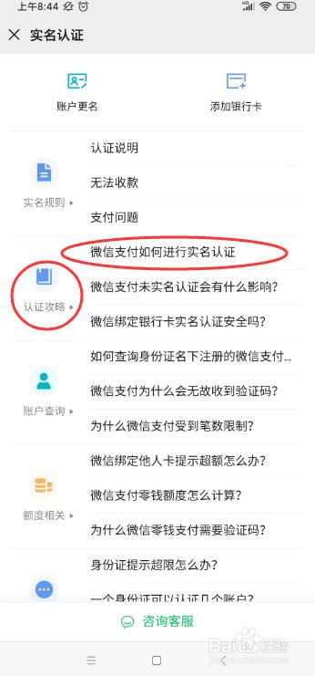 在出现的页面中,找到“认证攻略”右侧的“微信支付如何进行实名认证”,点击进入