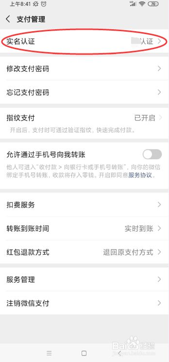 然后在支付管理页面中点击“实名认证”