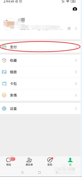 进入微信界面后,点击右下方的“我”,然后点击“支付”
