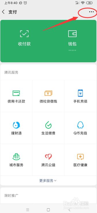 在“支付”页面右上角点击那三个小点“...”