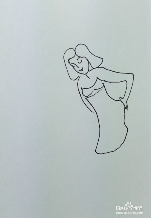 再用线条画出这个美女的身体轮廓和她身上穿着的漂亮裙子。
