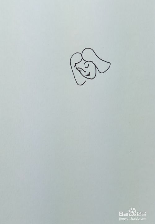 在白纸上用线条和曲线画出一个美女的头部轮廓,并画出她的眼睛,鼻子,嘴巴和头发部分。