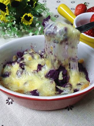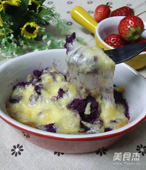 做完紫薯面包和吐司披萨后,分别剩下一点点紫薯和马苏里拉芝士;想着已经化冻了再放重新入冰箱冷冻肯定不营养了,突然想起了前几天做过的焗饭;何不焗一次紫薯尝尝呢;哈哈,就这么定了,明天的早餐就是它了~~~
