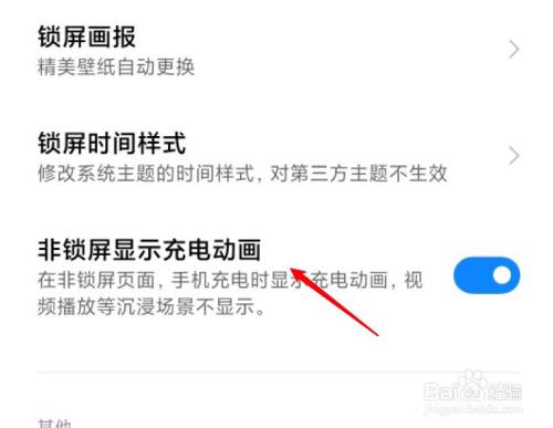 点击打开下方的非锁屏显示充电动画。
