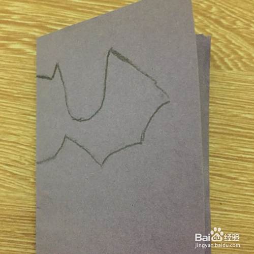 然后在折纸上画出蝙蝠的轮廓,如下图所示。