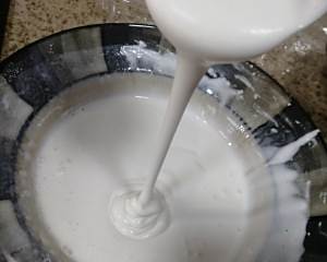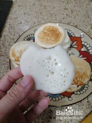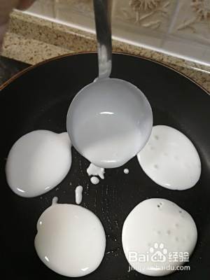 倒入如图1/3勺的大米糊为一个小饼的量,一锅摊5-6个,中间可以不摊因为爱糊
