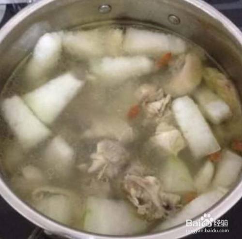 鸭肉炖软烂时加入切好的冬瓜。