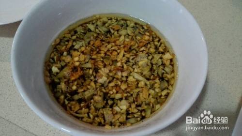 碗里放入所需的生抽,把油锅里爆香的蒜蓉和油倒入碗里,酱汁大功告成。也可以根据个人喜好,用香菇、萝卜干、肉末调成酱汁。