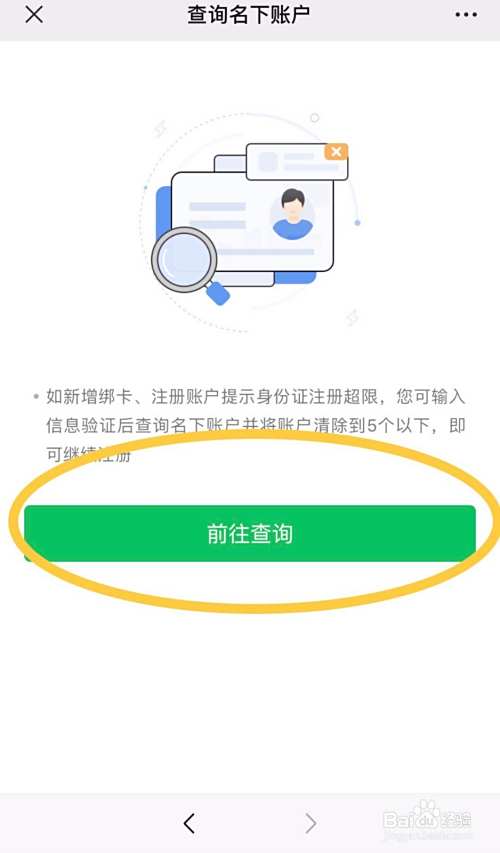 查询名下账号界面选择“前往查询”