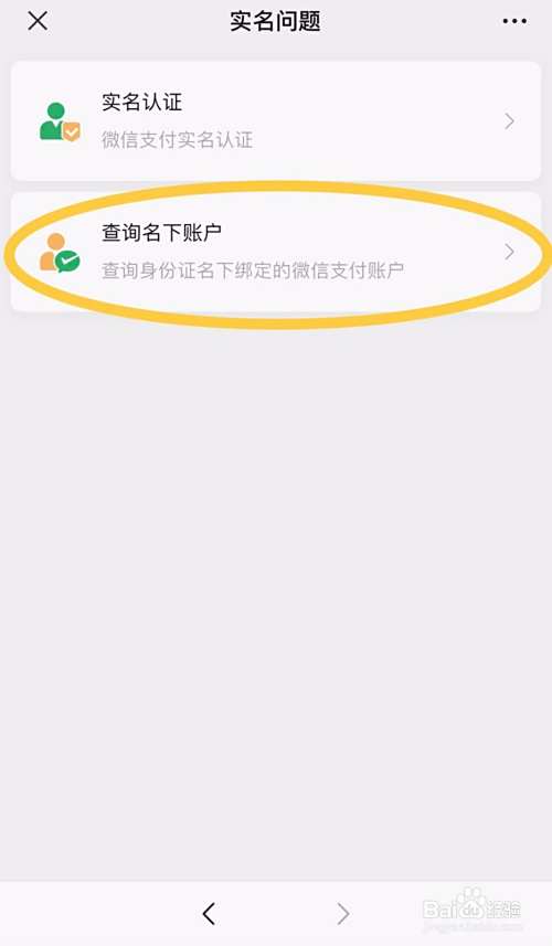 实名问题界面点击“查询名下账户”