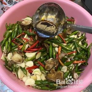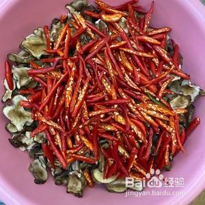 倒入适量的小米辣《提前晾晒好的小米辣》