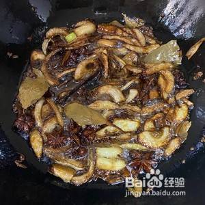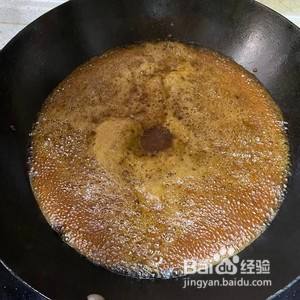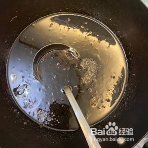 把大料捞出之后,在原先炸好的油里倒入1毫升的生抽,开火煮至沸腾