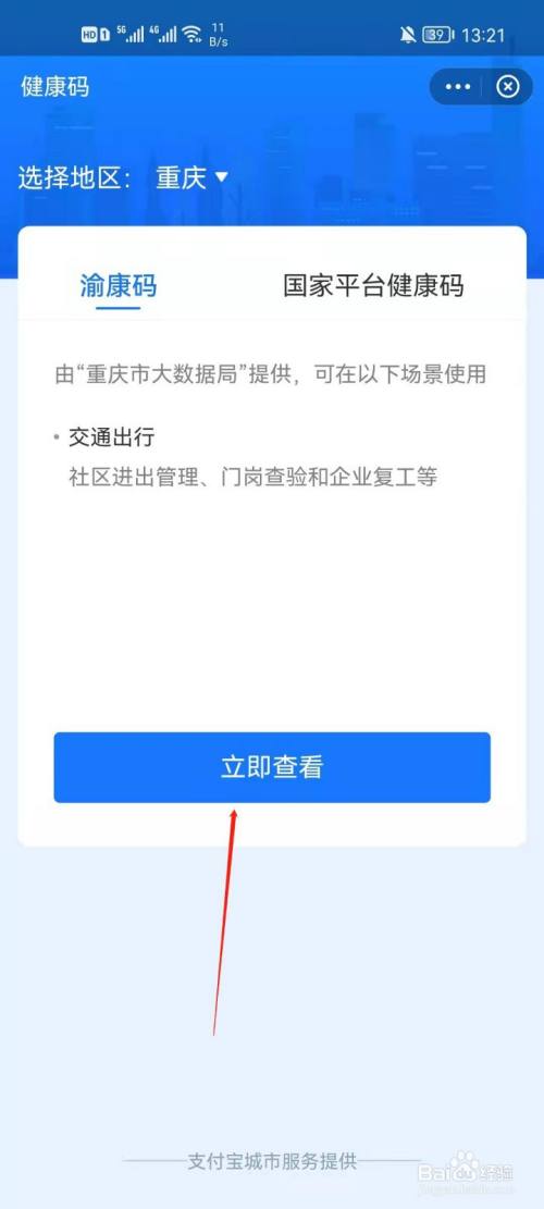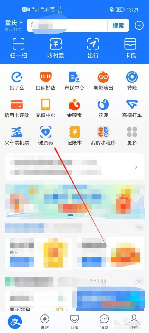 1、点击进入支付宝,点击进入健康码,或者直接搜健康码