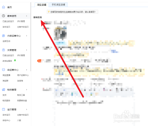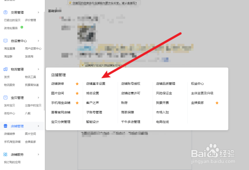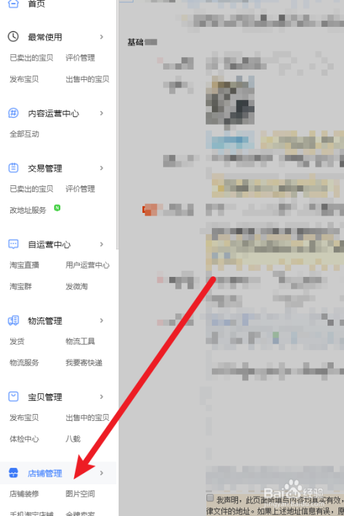 进入到淘宝后台里,点击左侧的【店铺管理】