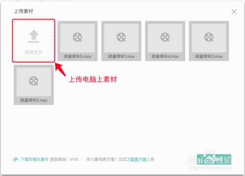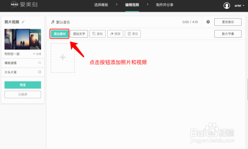 在编辑页面,点击『添加素材』按钮,上传自己的照片或者视频片段