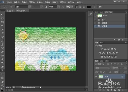 在Photoshop中,我们可以给图片添加上不同的艺术效果,来表达特定的信息,今天介绍一下如何利用滤镜库里的纹理文件夹,给图片添加上纹理化效果。