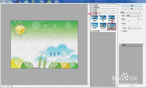 在出现的滤镜库中选择纹理文件夹,点击纹理化效果;