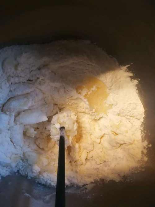 3加入点食用油,活成光滑的面团。盖上保鲜膜备用。期间可准备馅料。