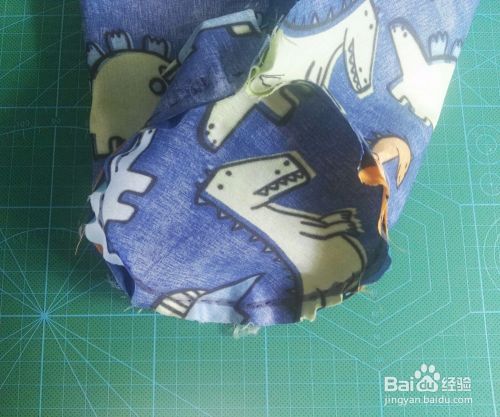 把圆柱体朝里向底部折,折到和大口子上方齐平的地方,用线缝一圈
