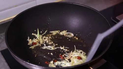7起锅烧油,下入葱、姜、蒜、干辣椒段,炒出香味。