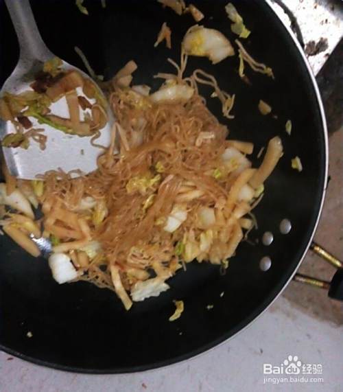 再将焯好的粉条放入,加点水,翻炒均匀即可