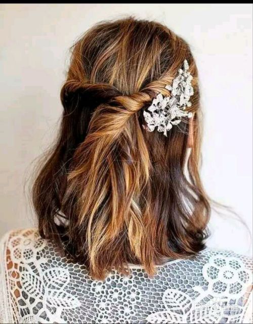 还可以把两边的头发扭转用夹子固定起来,扎这种的半扎发,