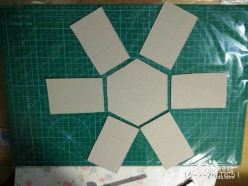 将2mm厚纸板剪成六变形(边长6.5cm)两块,大小自定长方形(6.5x10cm)六块