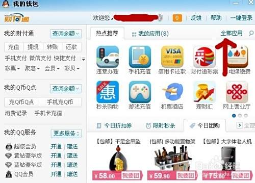 登陆qq,进入我的钱包,点击”全部运用“如图
