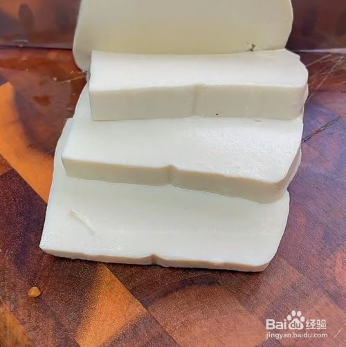 首先把豆腐切片,备用。
