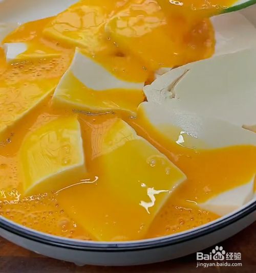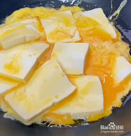 打两个鸡蛋,淋到豆腐上面。