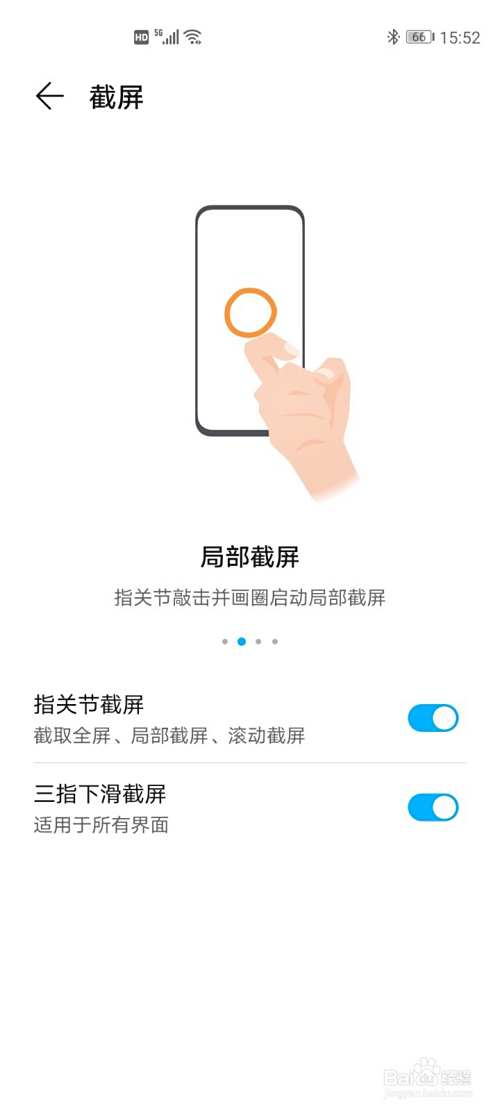 第三,局部截屏,指关节敲击屏幕后画圈,如图示;