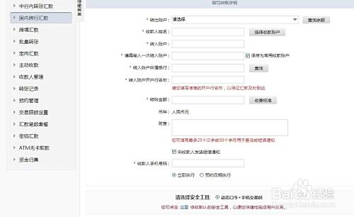 进入汇款界面,你可以根据自己的情况选择多种汇款方式,如中行内转账,跨行转账等等,操作基本类似。