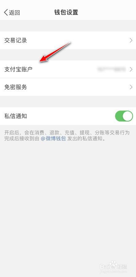 在钱包设置中点击进入支付宝账户。