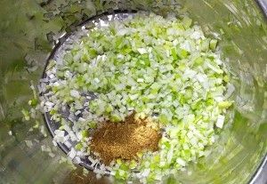 大葱切碎,放入少许花椒粉