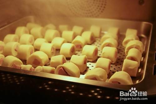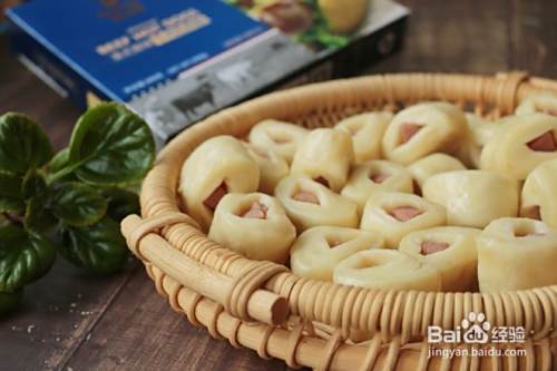 除去香肠之外的面团材料混合在一起,揉成团,放在温暖的地方开始发酵。