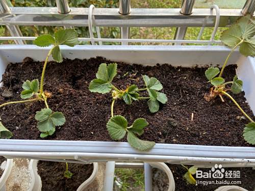 草莓苗回家泡水一个小时,去掉老叶和大一些的叶子,留着心和小叶,种下。注意如果留太多外面的大叶子会加速水分蒸发,不容易活。草莓种下后要每天喷水保湿,直到成活。