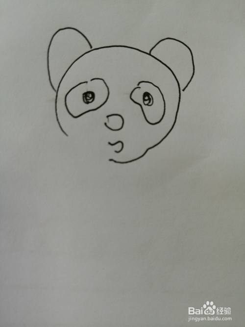 第四步,然后在可爱的小熊的鼻子下面画出小嘴巴,注意嘴巴细节的画法。