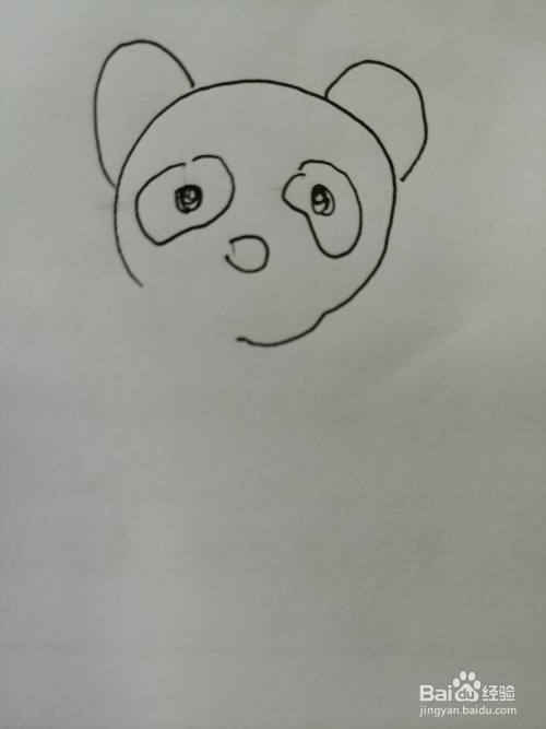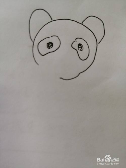第二步,接着在可爱的小熊的头部里面画出两只黑色的大眼睛,小熊的眼睛很可爱。