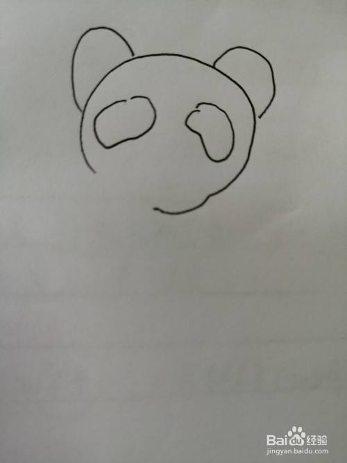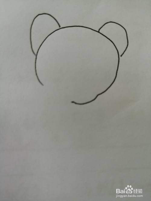 第一步,我们先画出可爱的小熊的椭圆形的头,注意小熊头上两只耳朵的画法。